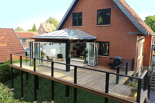 Orangeri på hævet træterrasse