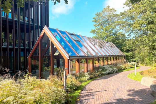 Orangeri til kontorhus er et fritstående orangeri i Douglas tømmer, opført midt i en beplantning med fokus på at styrke den lokale biodiversitet.