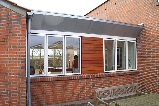 Den udvendige tagkants skrå profil giver en let udsende og er beklædt med zink hvilket giver en flot sammenhæng…