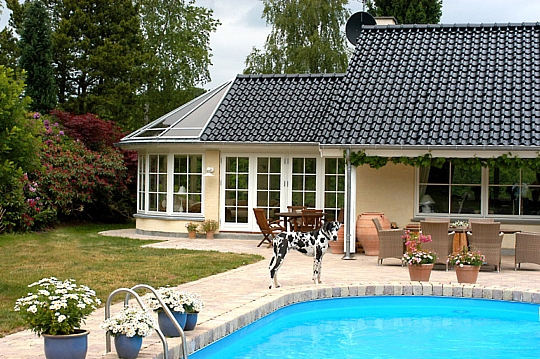 Tilbygning til patriciervilla med pool er en god blanding af klassisk design og stilfuld elegance.